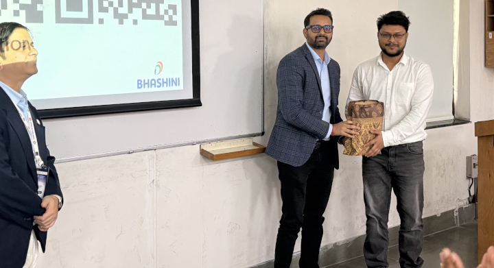 We Displayed our technologies such as DocumentOCR, Audiobook in the booth. we had the privilege of presenting our innovative technologies through a poster presentation and live demonstrations to Professor Santanu Chaudhury (Director -IIT Jodhpur)