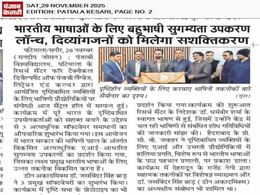A Symposium on Bhashini Technologies For Visually Impaired, Punjabi University , Patiala, Nov 28, 2025